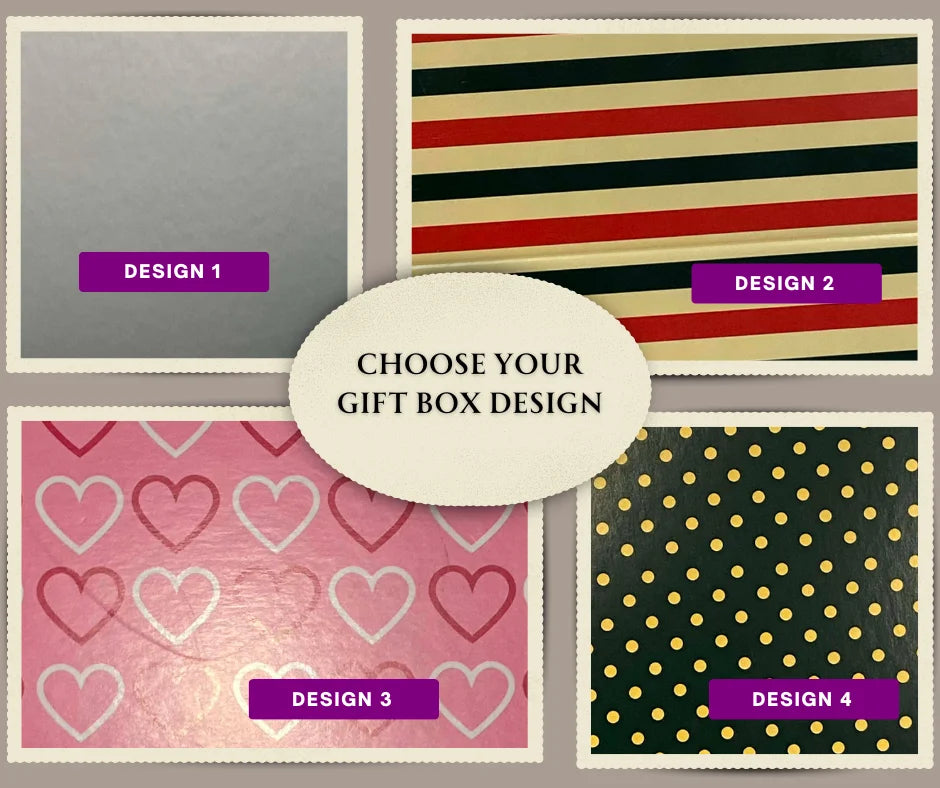 Gift Box Design Selection: Choose one (1) gift box design from the available options shown in the photo. Please indicate your chosen design in the cart notes before checkout.